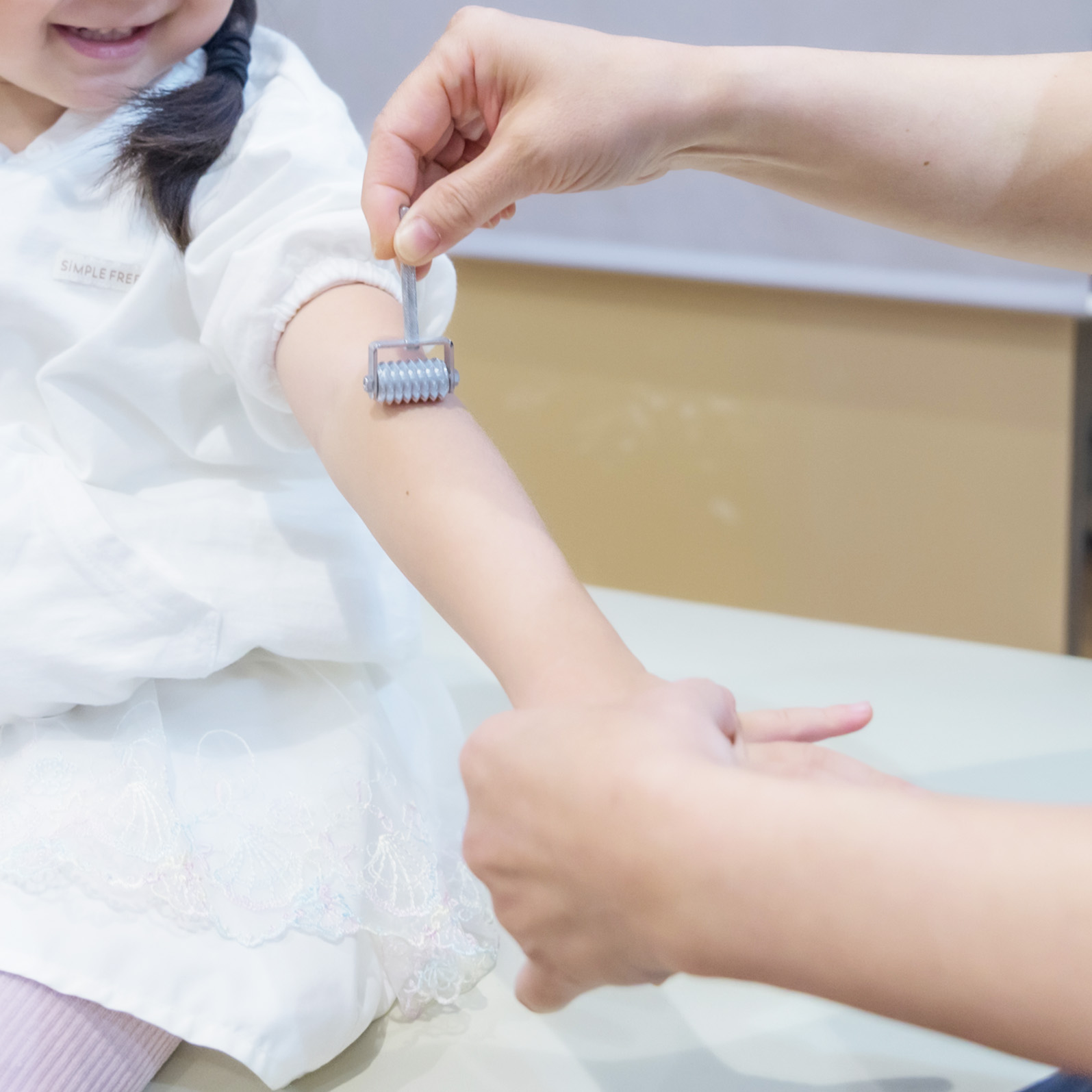小児はりでは、通常の鍼を使わず、先端が丸くなった専用の鍼や、手技療法を用いて行います。